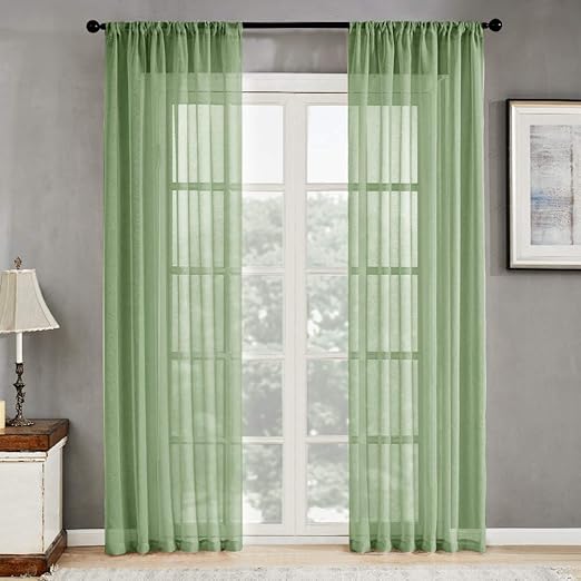 Amazon Com Mrtrees Sheer Curtains Green 84 Inches Long Living