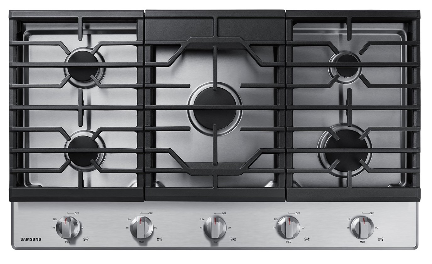 Add to compare compare now. 36 inch 5 burner stainless steel gas cooktop with flameselect dual flame power burner heavy duty grates optisim burner low profile cooking surface lp conversion kit push to turn knobs up front centralized controls and flame failure safety.