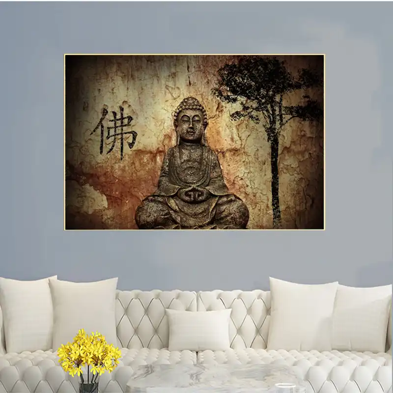 Vintage Chinese Style Buddha Painting Print On Canvas Pictures For