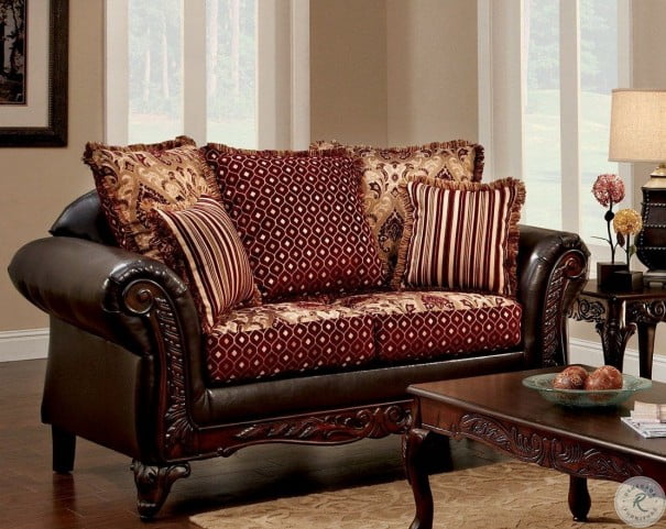 Ellis Brown And Burgundy Loveseat From Furniture Of America