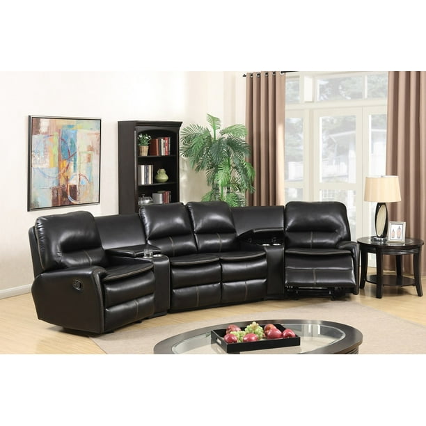 Black Leather Air 5pc Home Theatre Sectional Sofa Living Room Rock