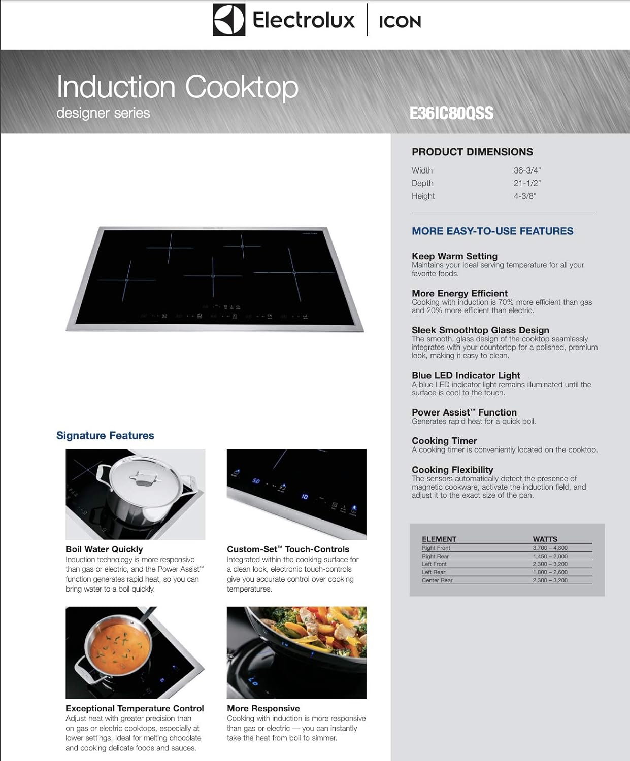 E36ic80qss Electrolux Icon Designer Series 36 Induction Cooktop