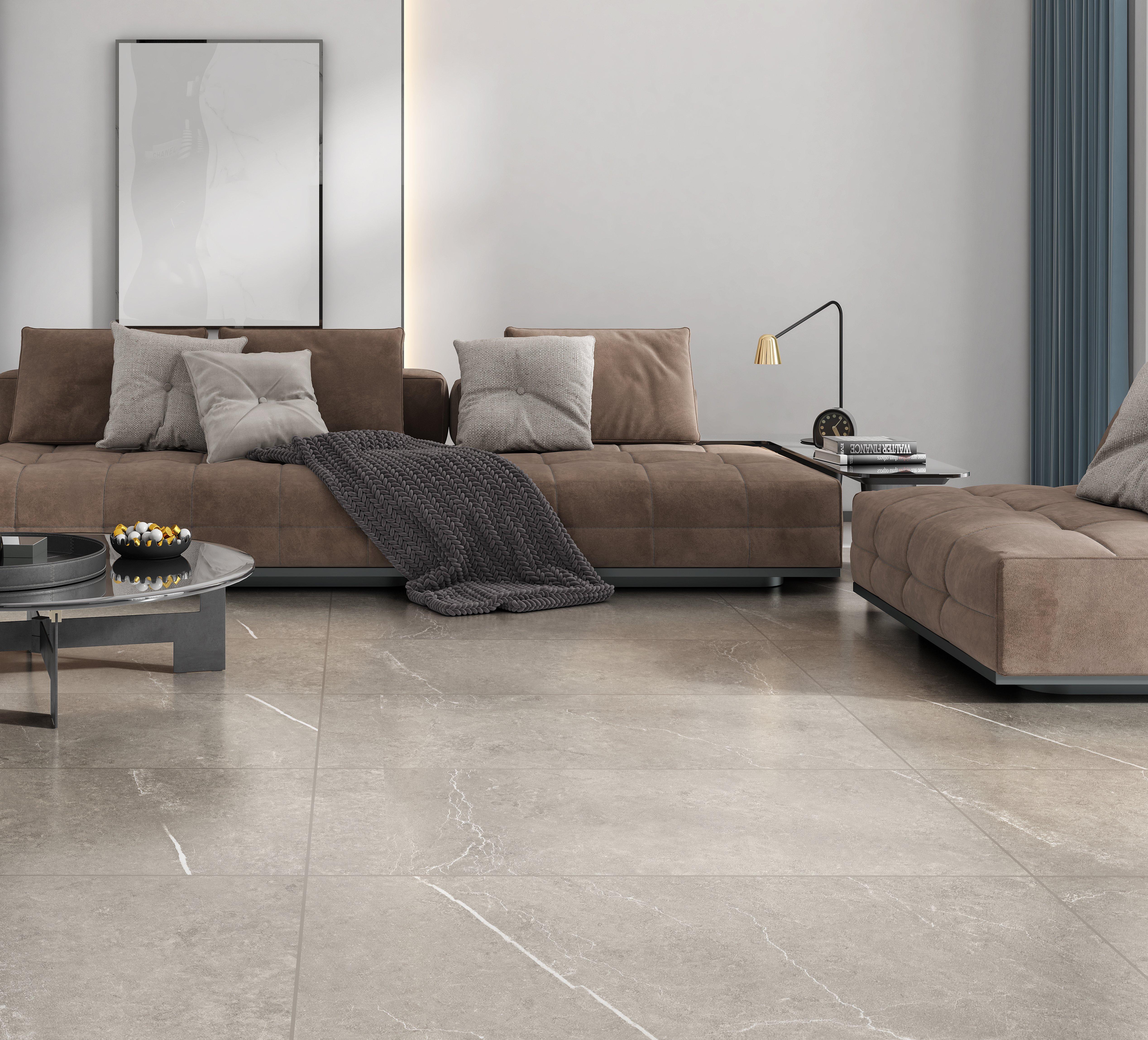 European Style Flat Apartment Living Room Grey Marble Floor Tile