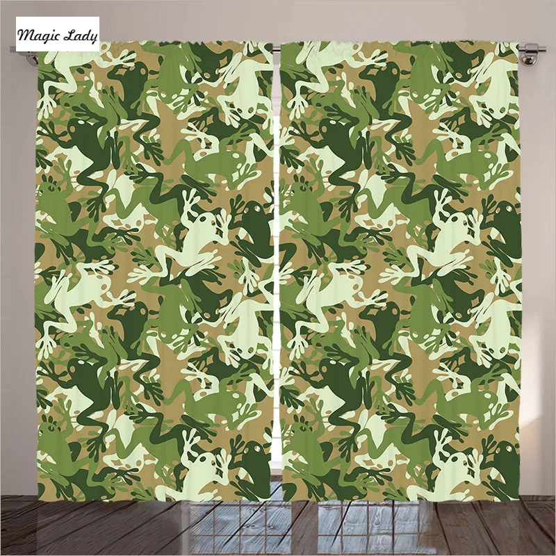 Camouflage Curtains 2 Panels Set Monochrome Army Attire Pattern