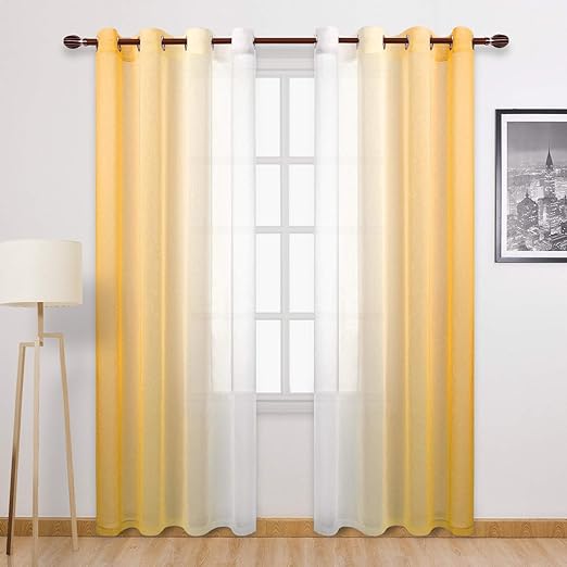 Amazon Com Dwcn Yellow Ombre Fau Linen Sheer Curtains Semi